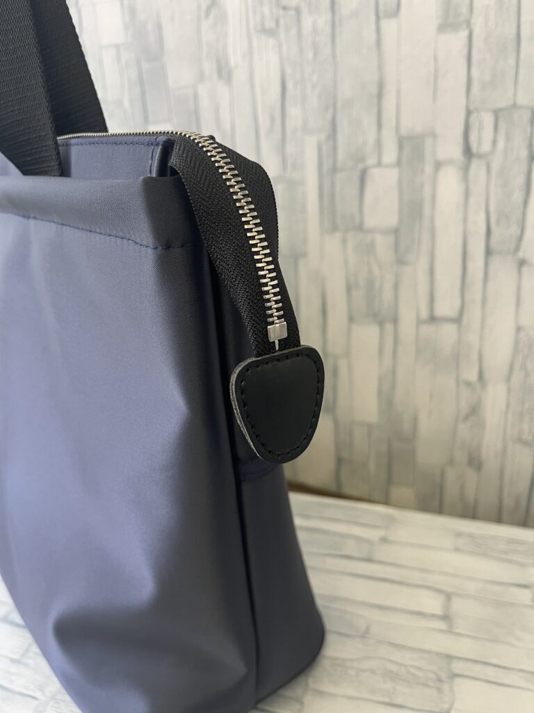 ファスナーがつかないトートバッグを作って試作して使っていました。これはこれでよかったのですが、水筒や手帳をいれた状態で運転するとちょっとのブレーキで倒れてしまいます。また急ブレーキをした際、荷物が飛びしてしまいイラッとすることも…。そこで単純に思ったのです。一度ファスナーを取り付けてみようと。