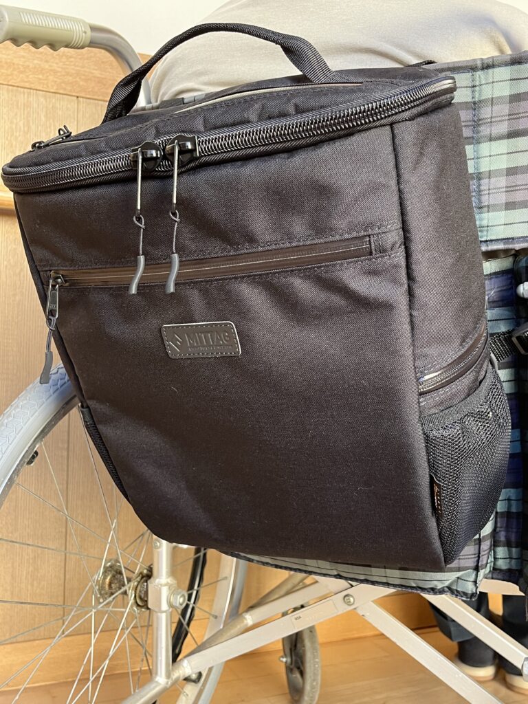 障害を抱えて車イスに乗ってらっしゃる方は、役所に提出する書類がけっこうあるようで、その書類を入れられるA4ファイルに対応したポケットがほしい。でも大きすぎると、カバンの底近くにある荷物が取りにくいので、ジャストサイズのカバンがほしい。