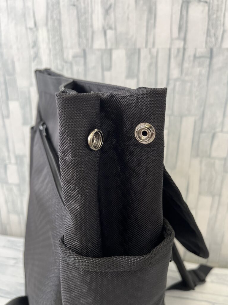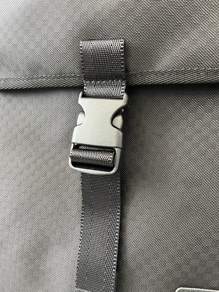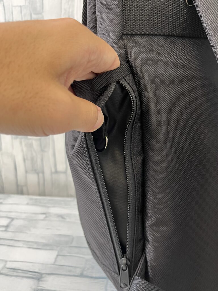 サイド部分には、定期等にも使いやすいファスナーポケット、マチ調節機能をとりつけているので、用途に合わせて使いやすい仕様です。