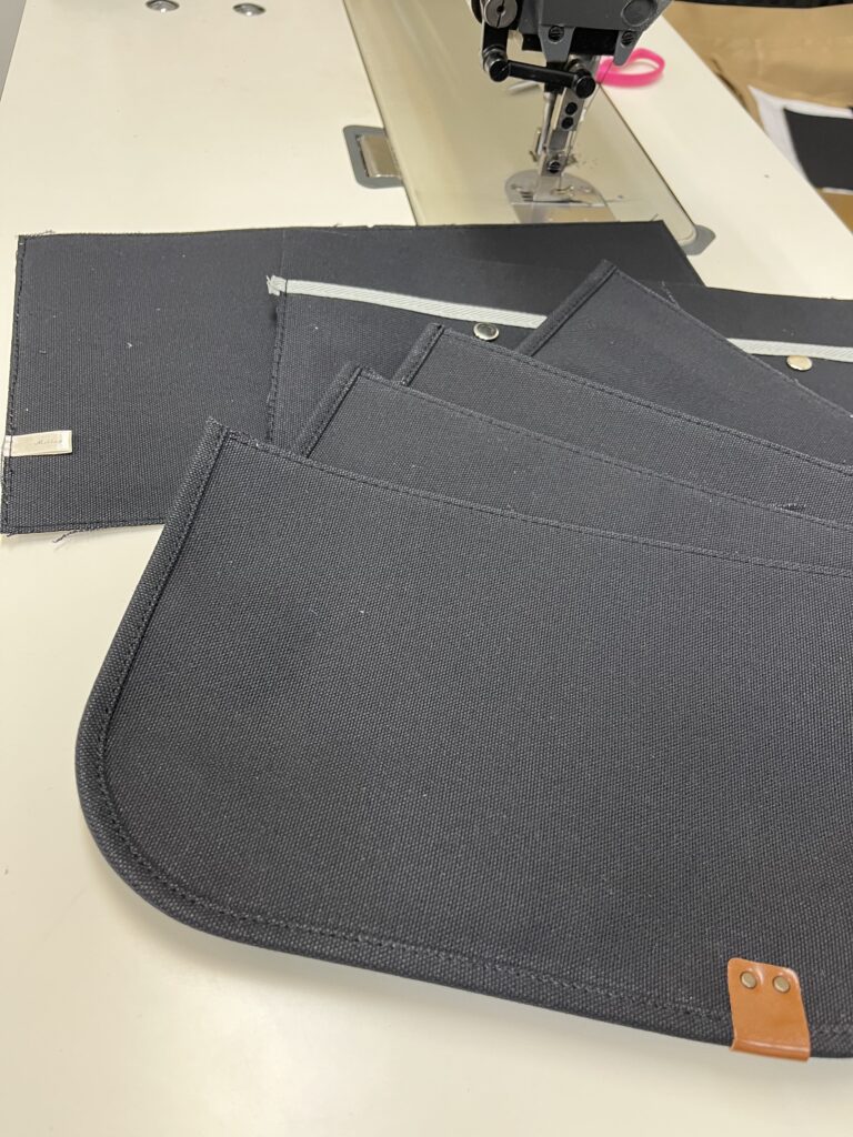帆布の人気商品。ブラックのショルダーバックの作製に着手しました。