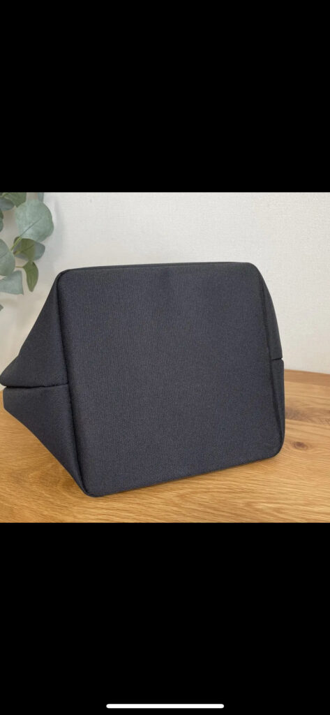 それを軽減するために、内部に底板を入れ込みました。また、内層生地に、抗菌防臭加工生地を使用したので、お弁当などの匂い移りもなく清潔です。