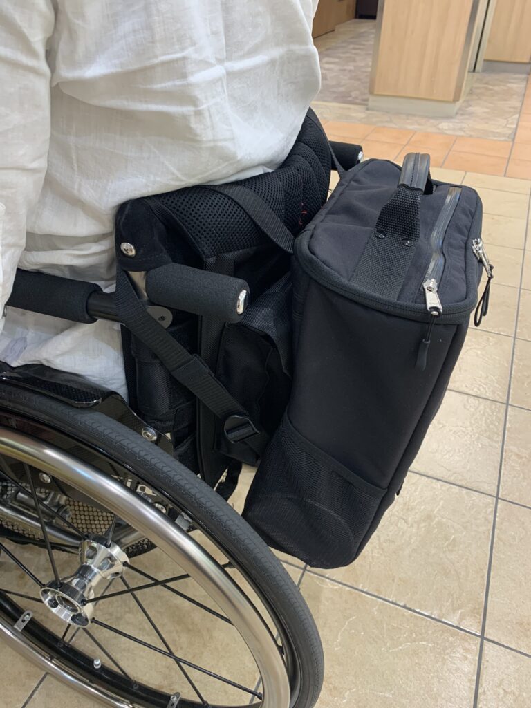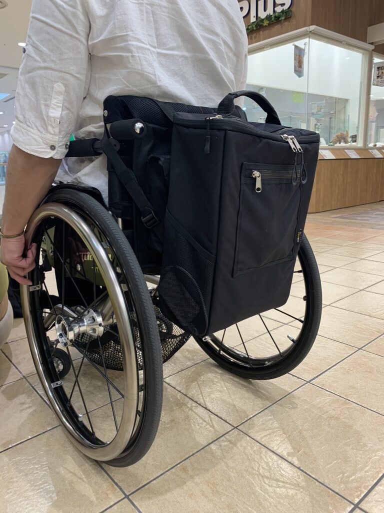 前回は車イスのオリジナルバックの依頼があったことをお話ししました。今回は、依頼内容にそってつくったカバンを、依頼者と検証した結果を紹介したいと思います。